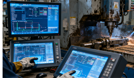 工业控制与自动化:工控机(IPC)、PLC控制界面、数控机床操作面板。